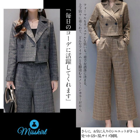 セットアップ レディース 秋冬 スーツパンツ ワイドパンツ 秋冬 春 スーツ ジャケット 2点セット 大きいサイズ ママ スーツ チェック セレモニー きれいめ カジュアル フォーマル 上品 卒業式 結婚式 入学式 入園式 お呼ばれ 30代 40代 50代 送料無料