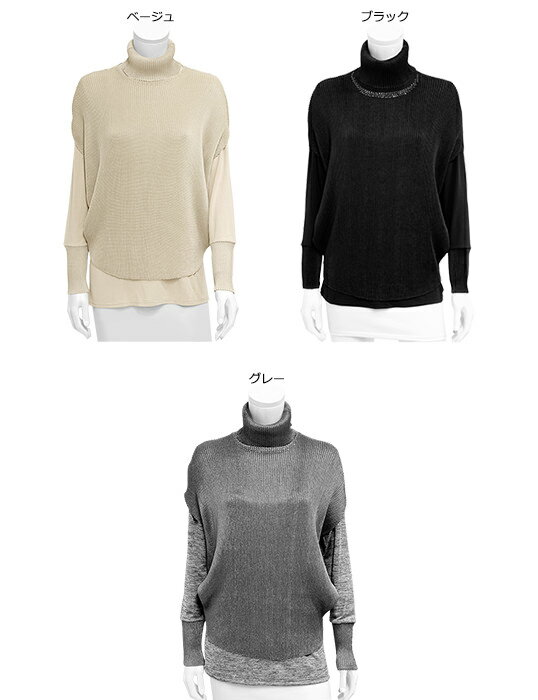 【SPECCHIO 公式店】スペッチオ シャトルプリーツ 銀引きビーズ刺繍 アンサンブル プルオーバー レディース 半袖 長袖 タートルネック 2点 大人カジュアル セットアップ オフィス ブラック グレー ベージュ 40代 50代 60代 春 夏 秋 冬 サイズフリー 大きいサイズ 送料無料