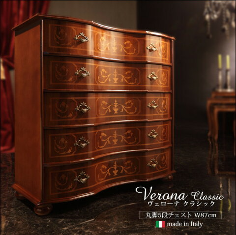 ヴェローナクラシック丸脚5段チェスト幅87cm。